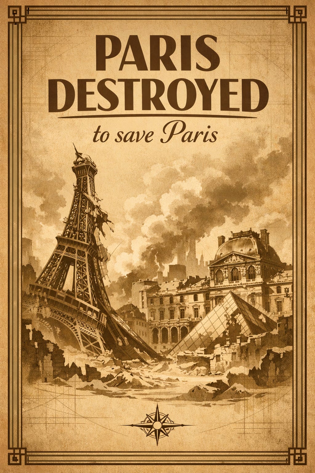 In Team America, Paris is saved after it has been completely annihilated. The Eiffel Tower collapses. The Louvre explodes. The team congratulates itself.