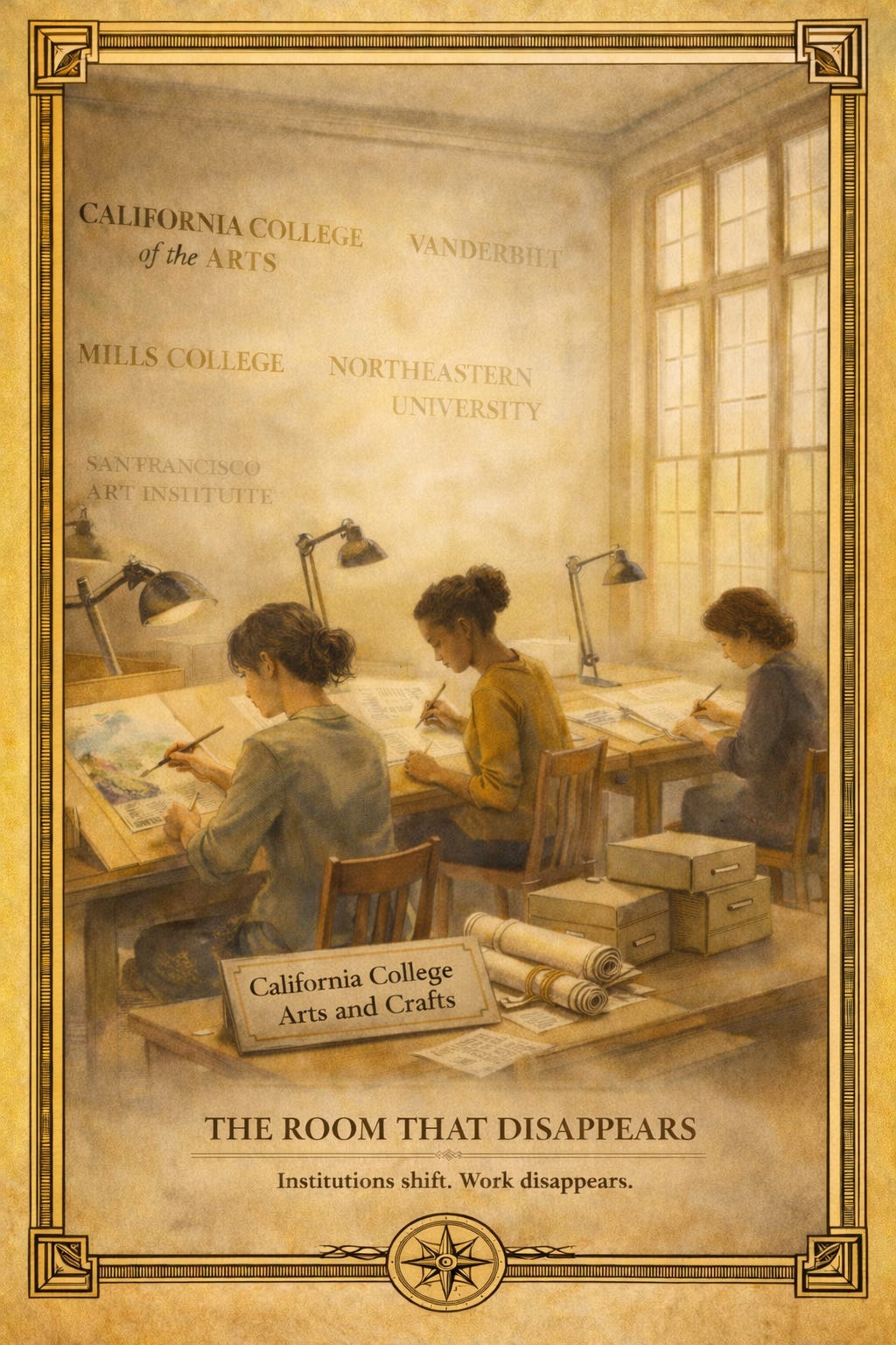 Quietly, almost politely, the Bay Area has begun to dismantle the architecture that once sustained artists’ artistic and intellectual lives, particularly those built to protect women’s access to serious education. Much of that architecture existed to treat the arts as a rigorous, lifelong pursuit — not as enrichment, but as vocation.