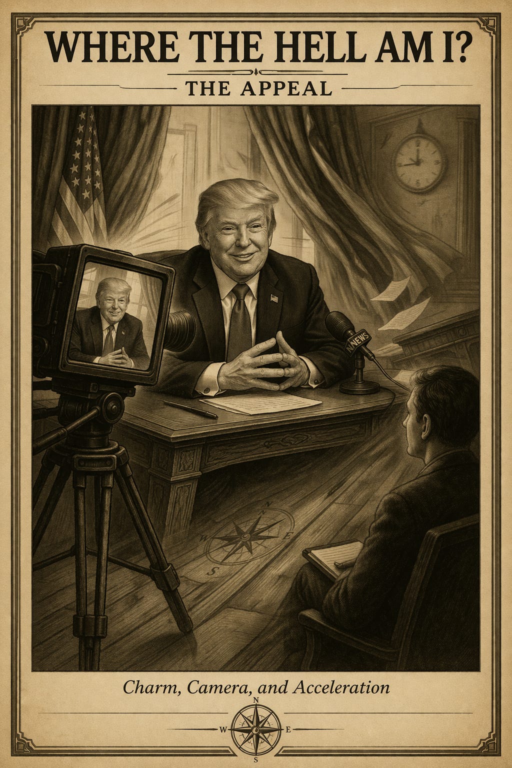 Donald Trump smiles like a man who has already decided the room belongs to him. On camera, he is effortless. Warm, even. A kind of grand, familiar American archetype, the friendly, egotistical tycoon who seems as though he might clap you on the shoulder, ask your opinion, and then proceed to ignore it entirely.