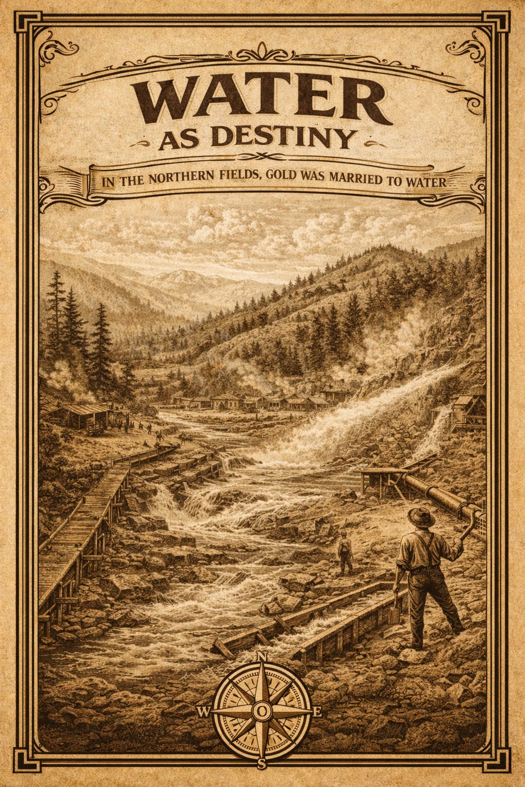 Hillsides were peeled back like stubborn envelopes. Ditches ran for miles. Flumes stitched ravines together in improbable wooden lines that looked less like engineering and more like arguments with gravity. Gravity, for its part, showed up every morning and clocked in as foreman.
