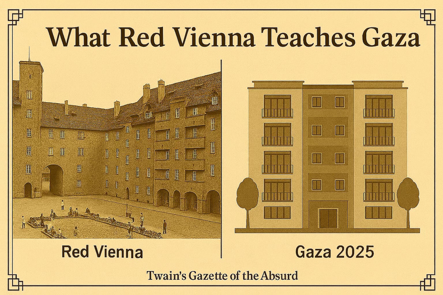 Evacuation cannot mean permanent exile. Palestinians want dignity and a binding right of return. History offers a model: Red Vienna, 1920s, where 60,000 sturdy apartments were built with courtyards, libraries, and communal baths.