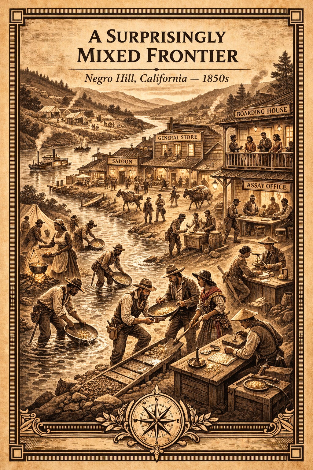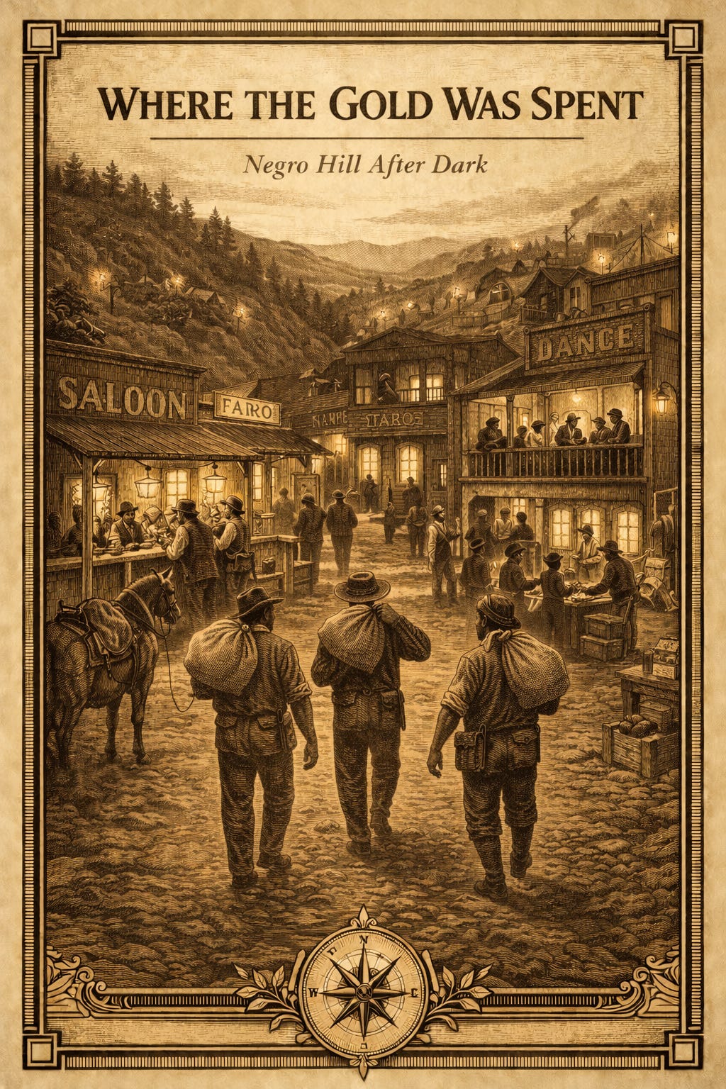 Negro Hill reminds us that the Gold Rush was built not only by miners, but by the cooks, musicians, merchants, gamblers, and women of many nations who ran the establishments where the miners spent their gold.