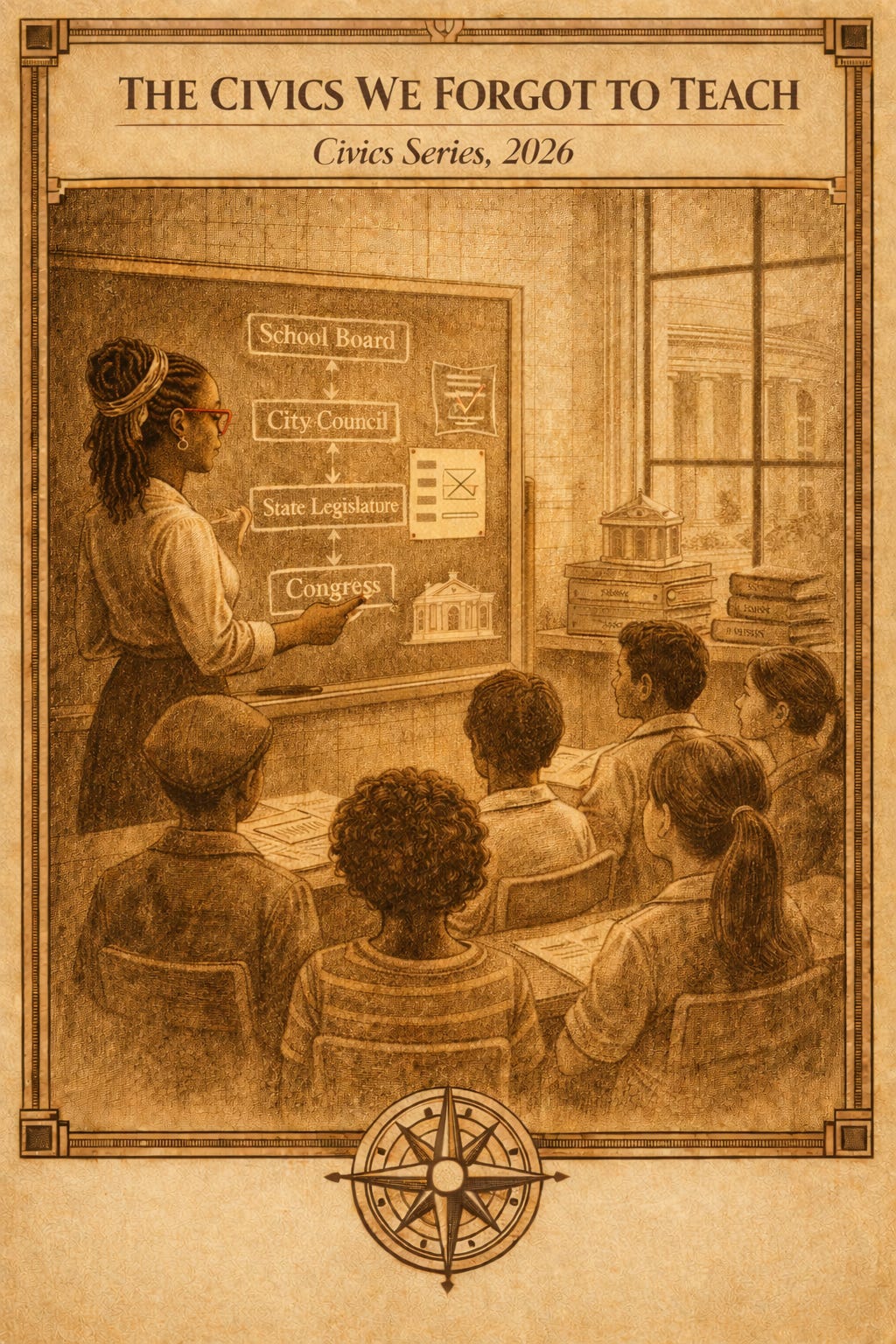 Somewhere along the way, civics education faded from practical instruction into distant symbolism. Students learned names and dates but not how governance actually functions. Few are taught how budgets are approved, how candidates file for office, or how local turnout shapes national policy.